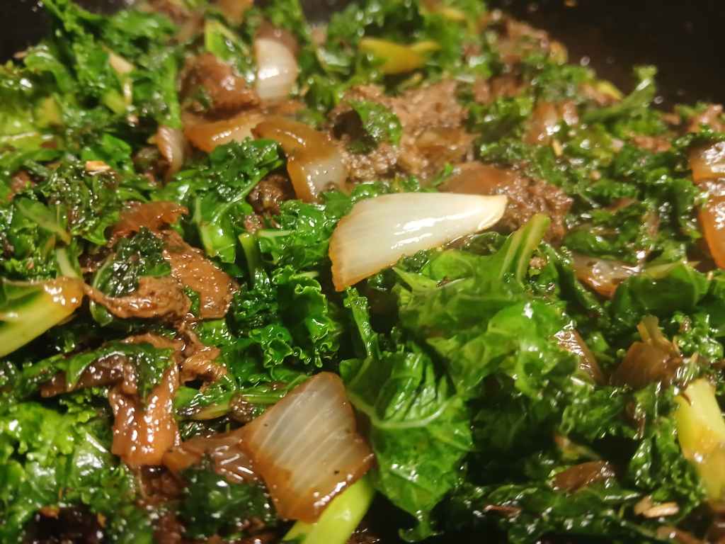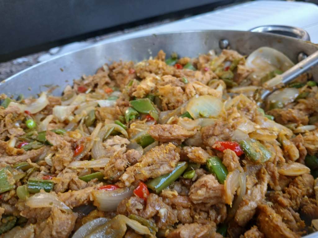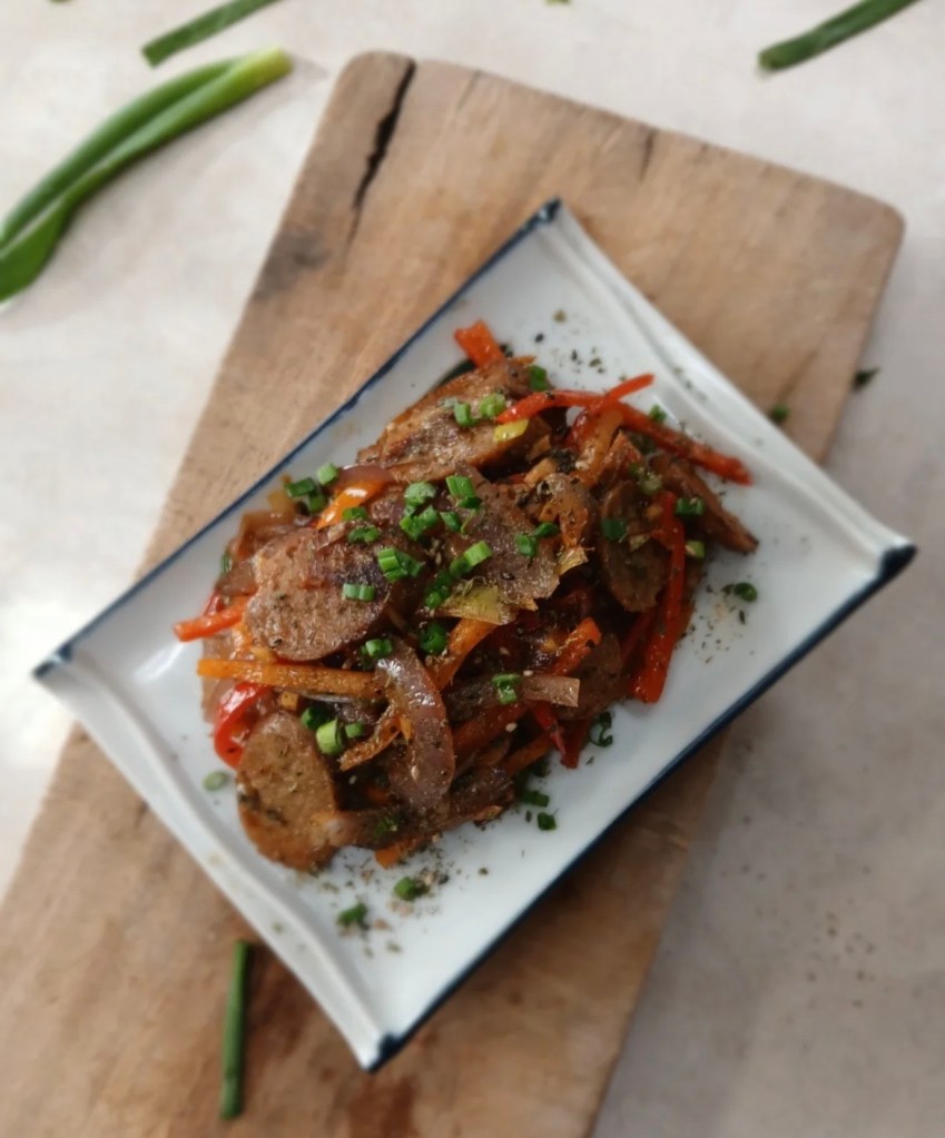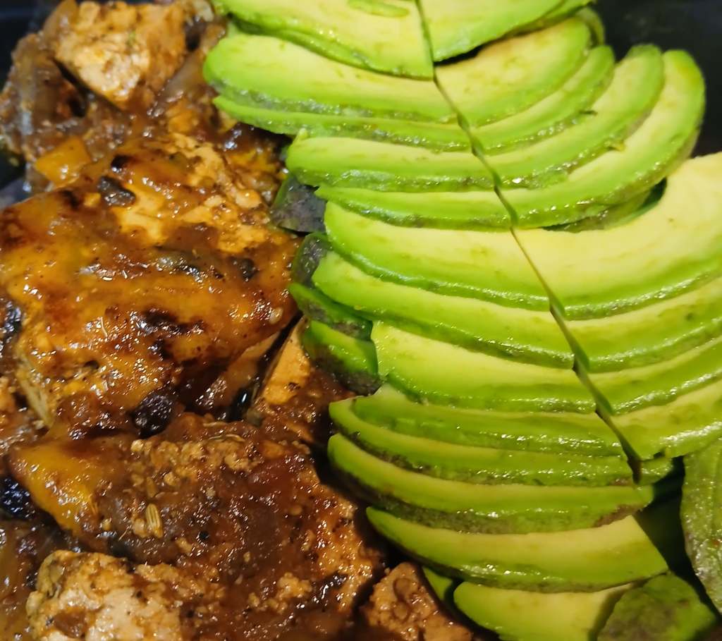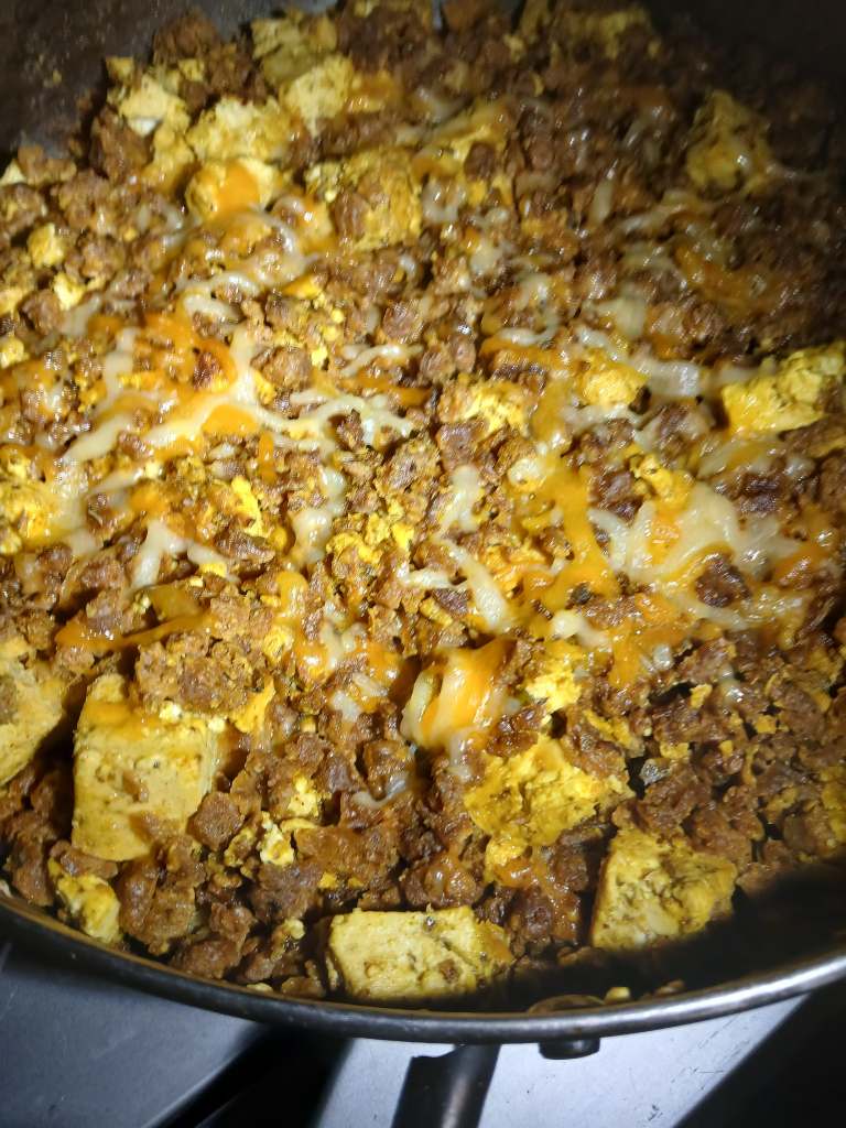 Tofu Scramble with Sautéed Kale, Peppers, Onions, and Red Beans. Spelt Flat Bread with Hummus and Tomatoes.