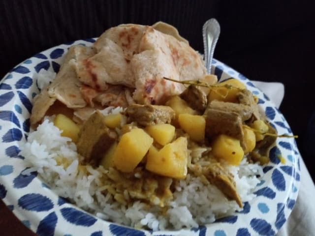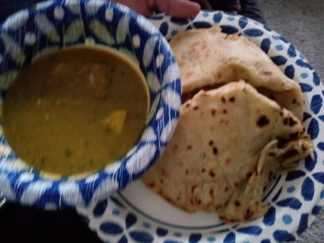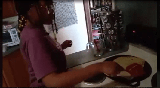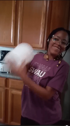 of Medical Missionary class. This cheerful young lady is cooking delicious roti after shaking up the flour for the batter.